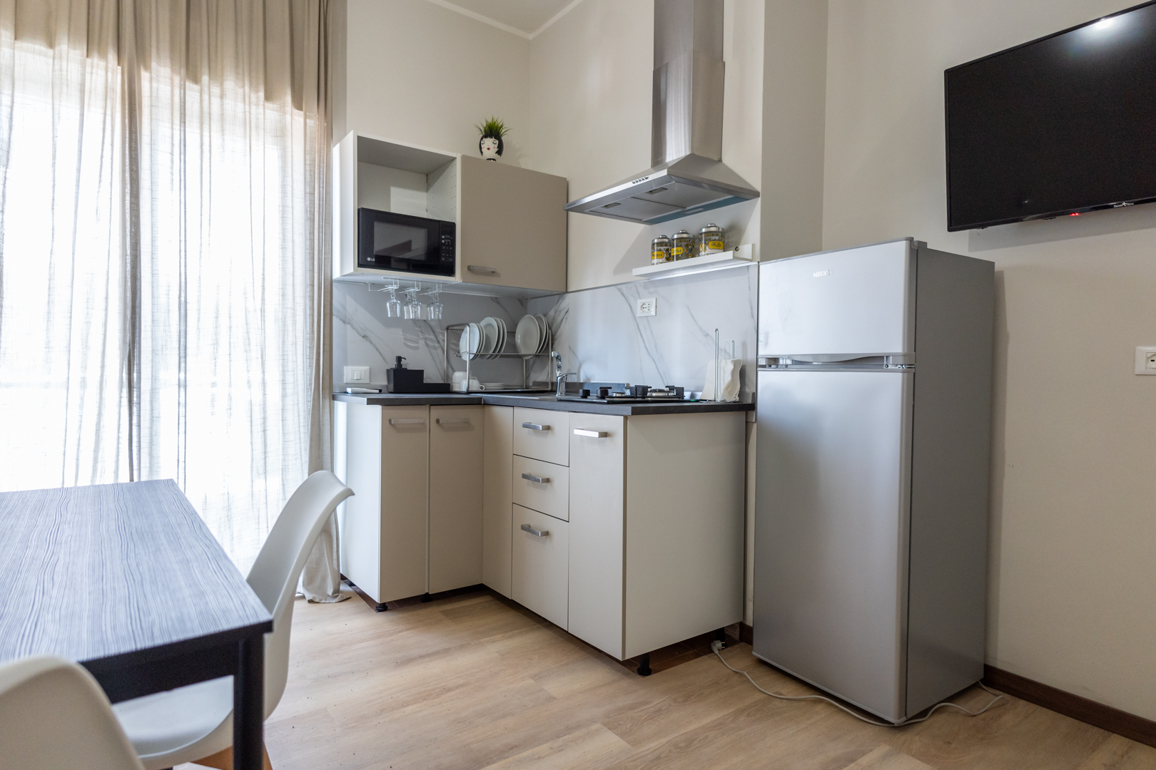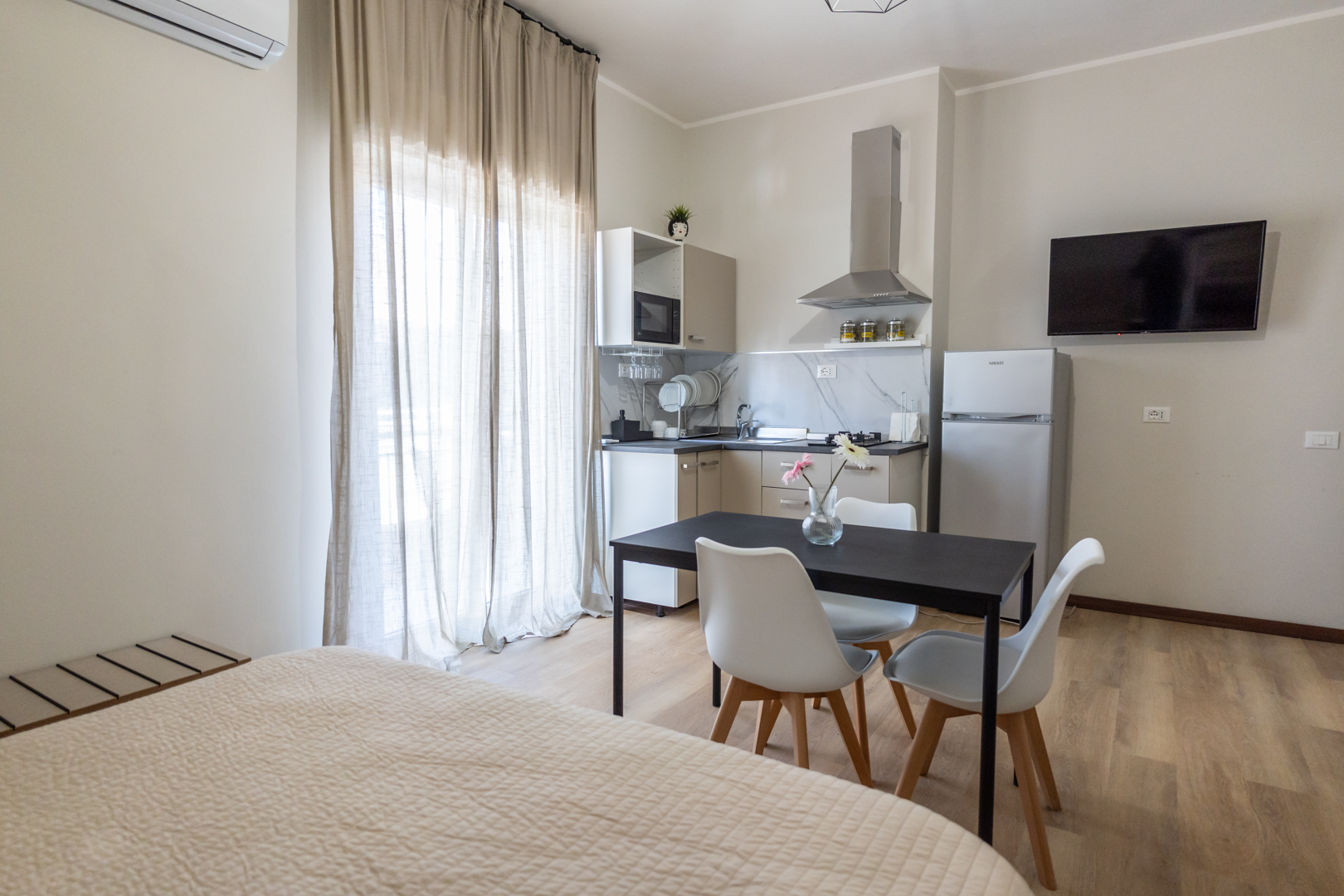 Dotato di 1 camera da letto e di un balcone che si affaccia sulla strada interna, questo monolocale climatizzato include un letto matrimoniale, un lettino singolo e angolo cottura interamente attrezzato. Presenta anche una TV LED. Il bagno privato comprende set di cortesia e asciugacapelli.